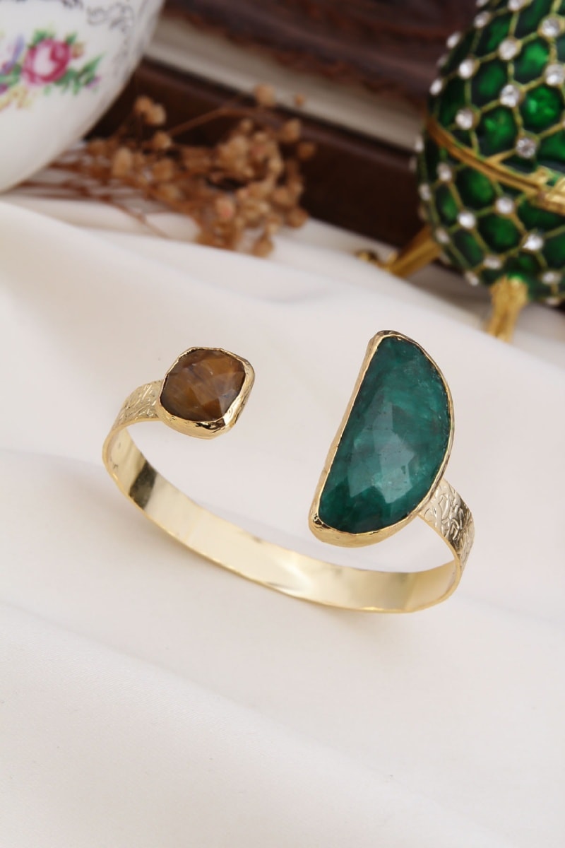 Pulsera abierta con 2 ágatas.