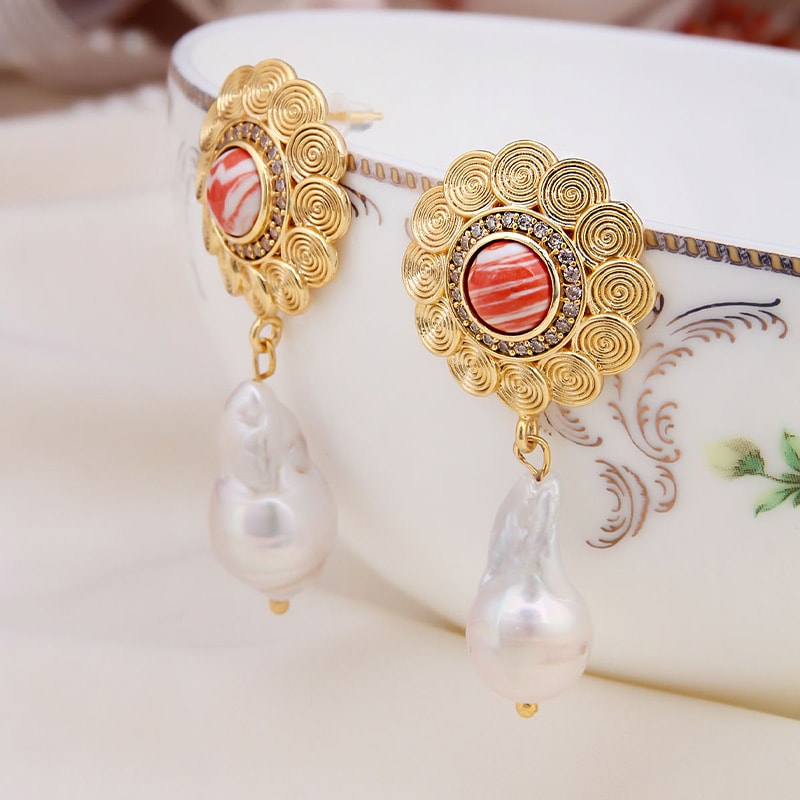 Pendientes - Latón chapado en oro, variscitas y perla