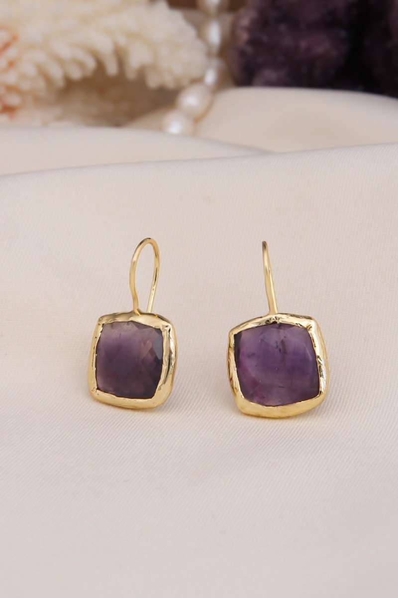 Pendientes chapados en oro amarillo con una amatista.