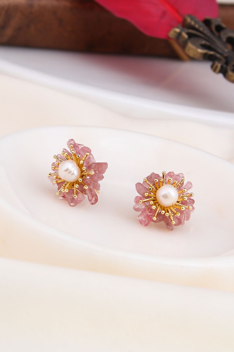 Dormilonas chapadas en oro amarillo con cuarzo y una perla cultivada.