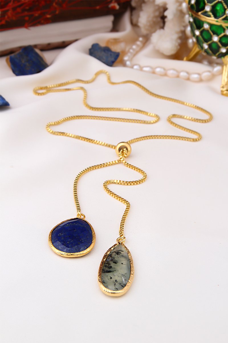 Collar bañado en oro fino amarillo - Zafiro y prehnita