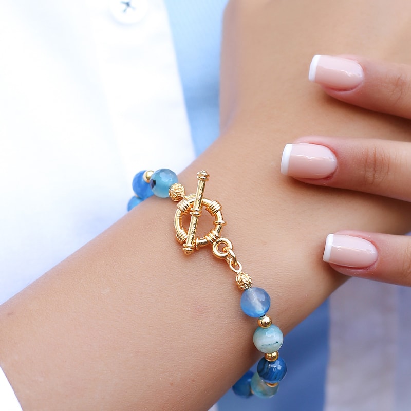 Enamórate de esta pulsera única, una joya atrevida que aportará un toque de carácter a tu estilo. Su diseño sofisticado, mezclando materiales preciosos y acabados cuidados, lo convierte en un accesorio imprescindible para realzar cada momento de tu día a día con un brillo irresistible.