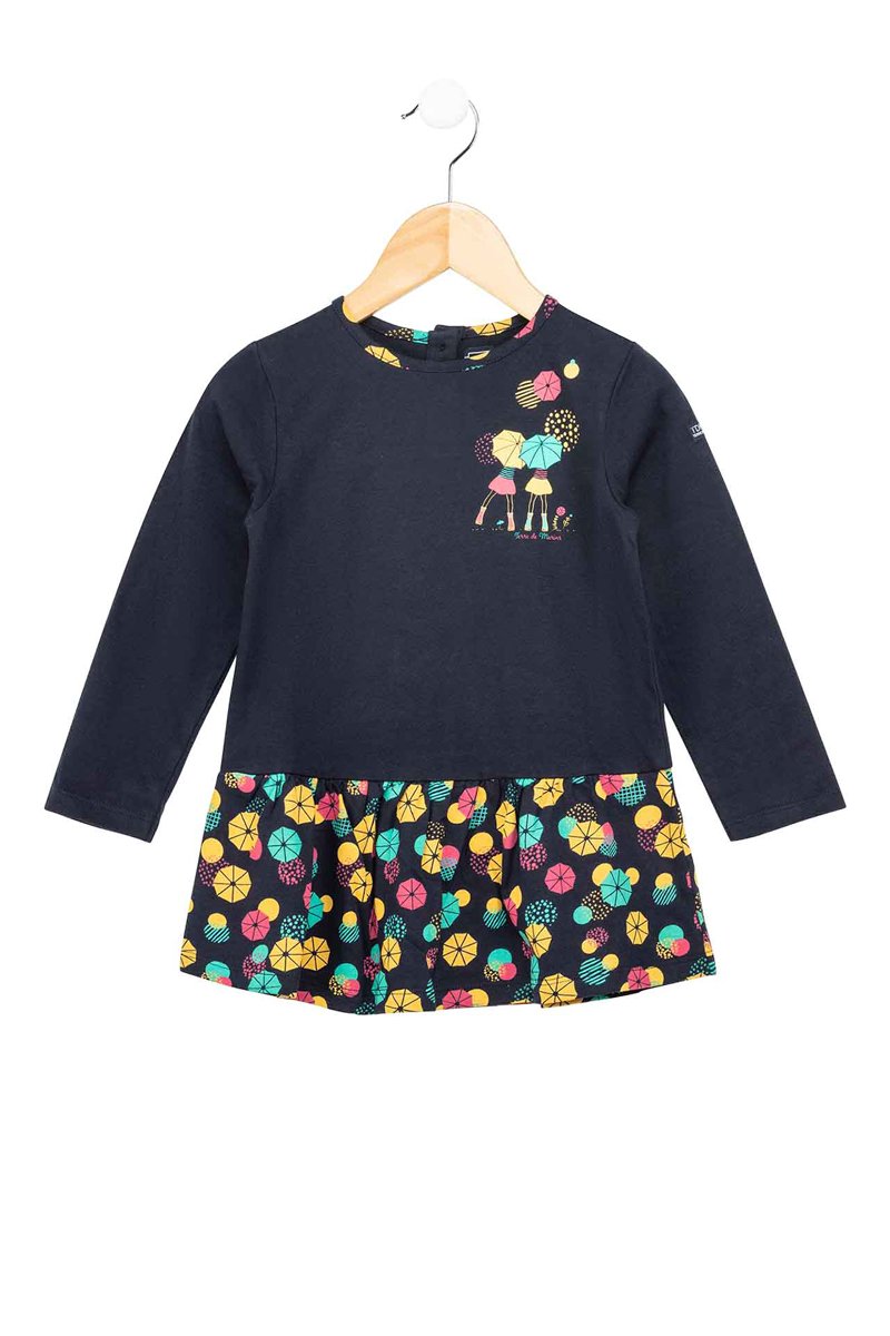 Estampado de fantasía en el cuello, delante y en la falda.