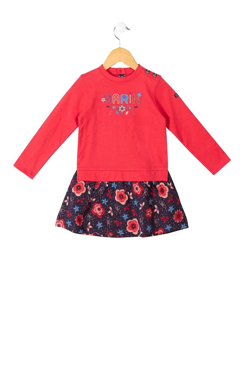 Estampado de flores delante y en la falda.