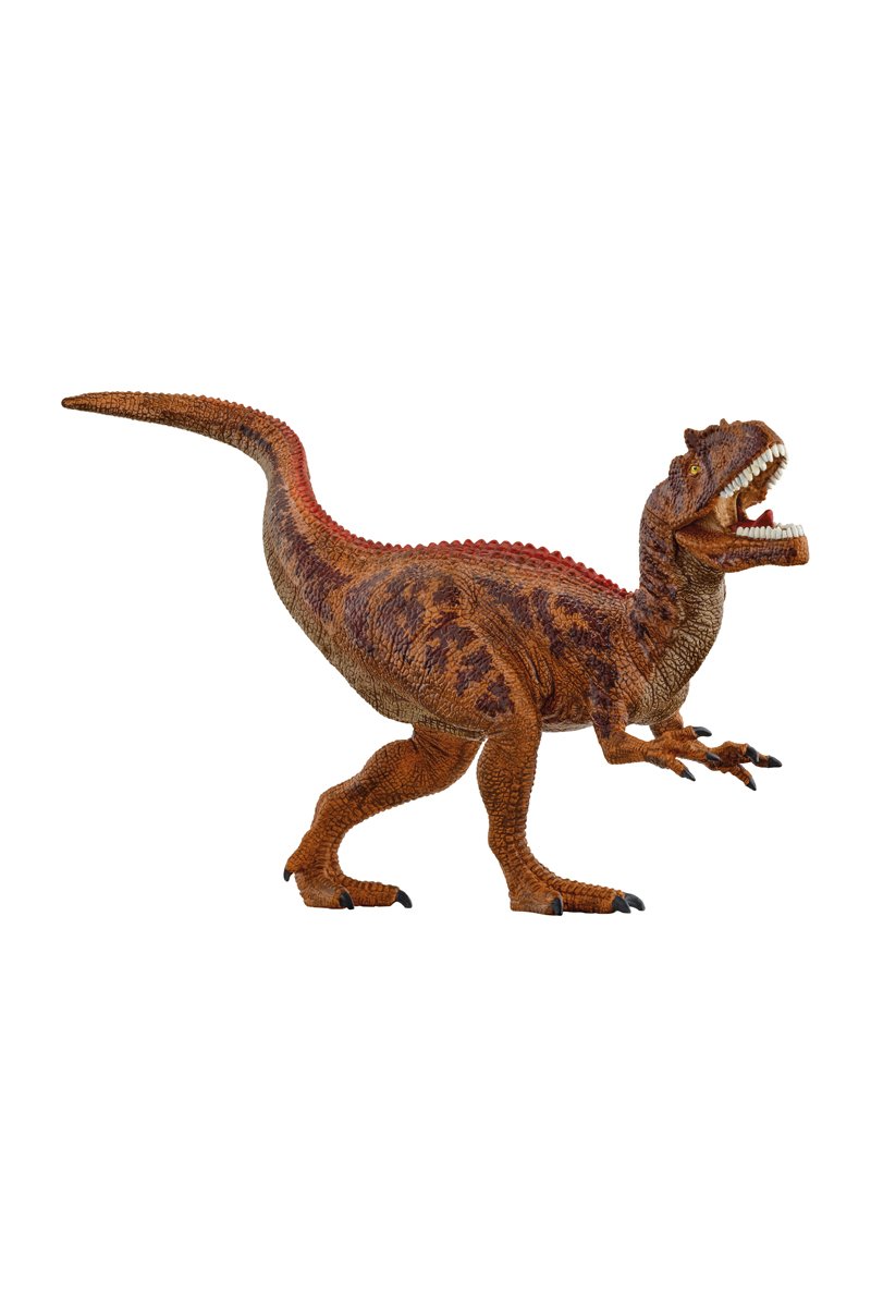 ¡Un depredador se acerca! Los pasos pesados del Allosaurus permiten verlo desde lejos. Encaramado sobre sus patas traseras, este gigante recorre la jungla en busca de una presa. A pesar de su tamaño inmenso, logra pasar desapercibido gracias a un hábil camuflaje. Sus escamas están adornadas con patrones coloridos que le permiten mezclarse en su entorno. Brrr, sus ojos amarillos penetrantes dan escalofríos... Es mejor mantenerse lejos de sus enormes mandíbulas y dientes afilados. No es sorprendente que este terrible carnívoro sea uno de los depredadores más peligrosos del Jurásico superior.