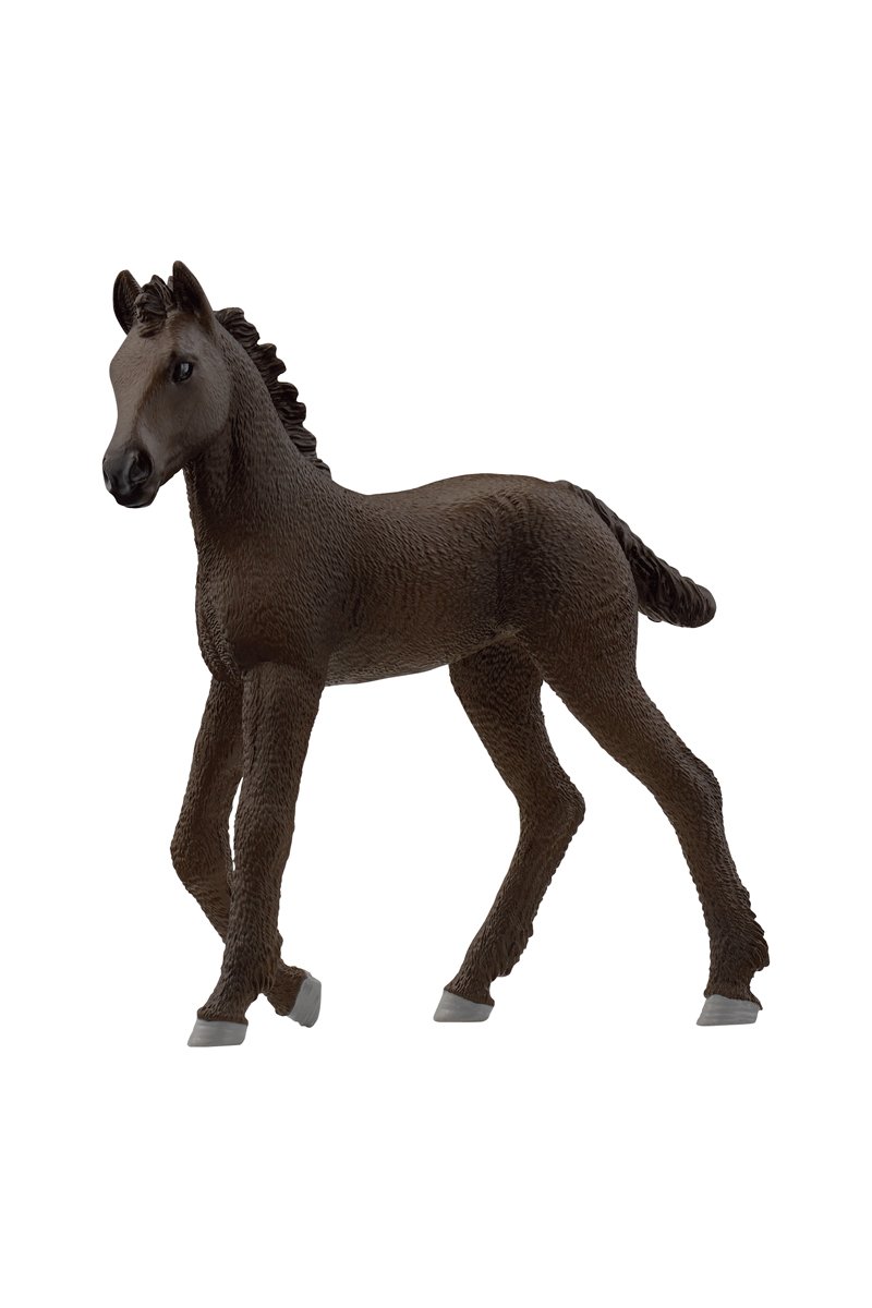 El pequeño potro frisón levanta las orejas y estira su largo cuello. ¡Parece que ha visto algo! Cabalga a través del pasto para ir a mirar más de cerca. Con su pelaje de un negro profundo, el potro frisón se parece mucho a su padre el semental frisón (disponible por separado). Un bello futuro lo espera como caballo de espectáculo o de doma, dos disciplinas ideales para este representante de una raza muy antigua. Los frisones son conocidos por su fiabilidad y su suavidad.