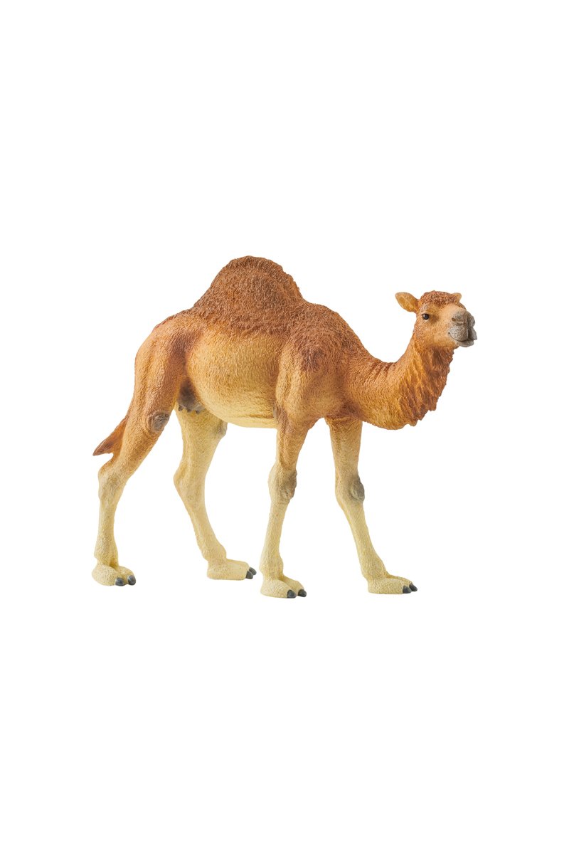 Los dromedarios viven en los desiertos de África y Asia. Se nutren principalmente de hojas, hierba seca y plantas espinosas. La joroba de estos mamíferos no se utiliza para almacenar agua sino grasa. En el desierto, pueden pasar varias semanas sin encontrar comida. El dromedario Schleich® Wild Life ha comido mucho últimamente, lo sabemos por su joroba bien llena.