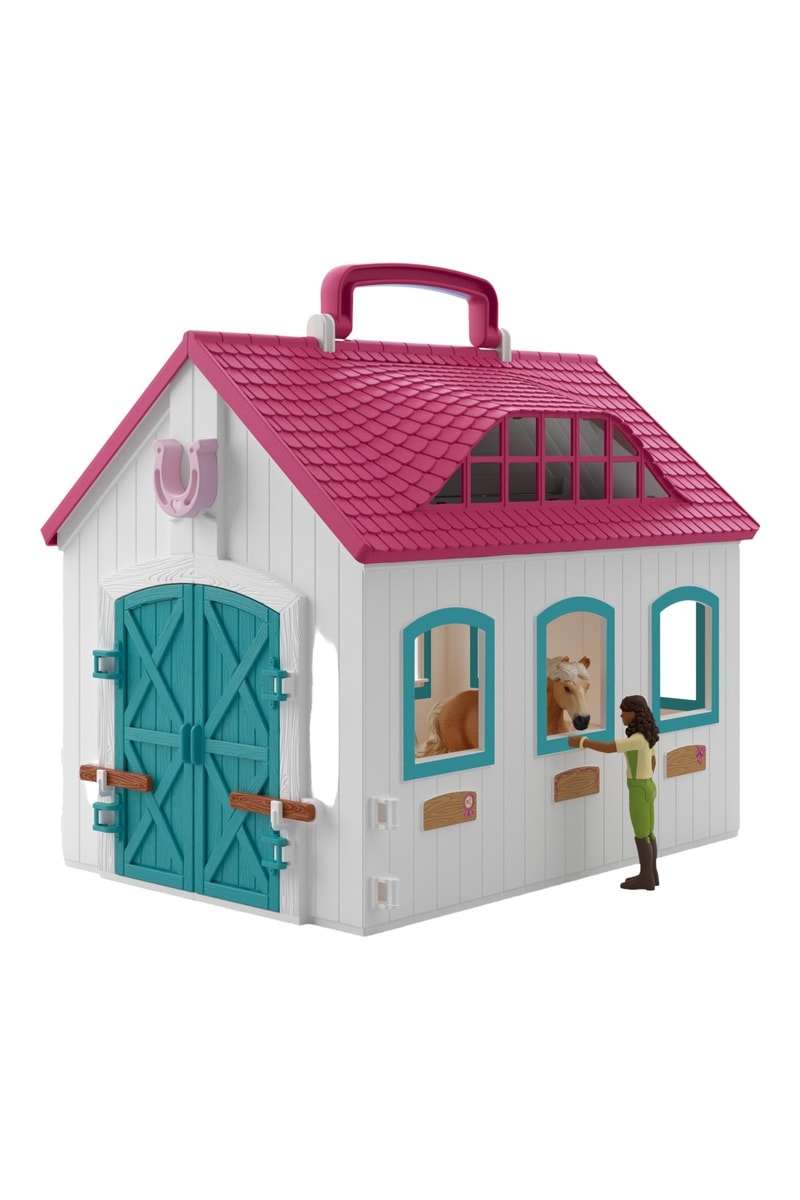 Con el establo transportable, tu peque podrá jugar, transportar y guardas las figuras y los accesorios del mundo ecuestre.
