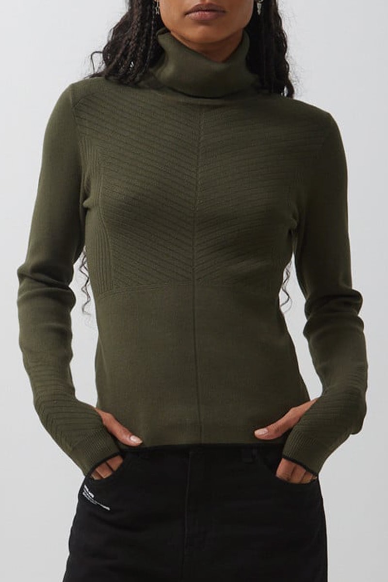 Estampado de rayas en relieve en las mangas, delante y detrás.