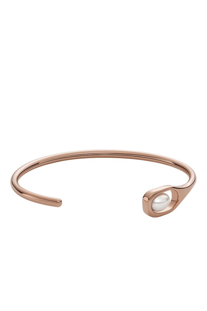 Pulsera abierta con perla de imitación.