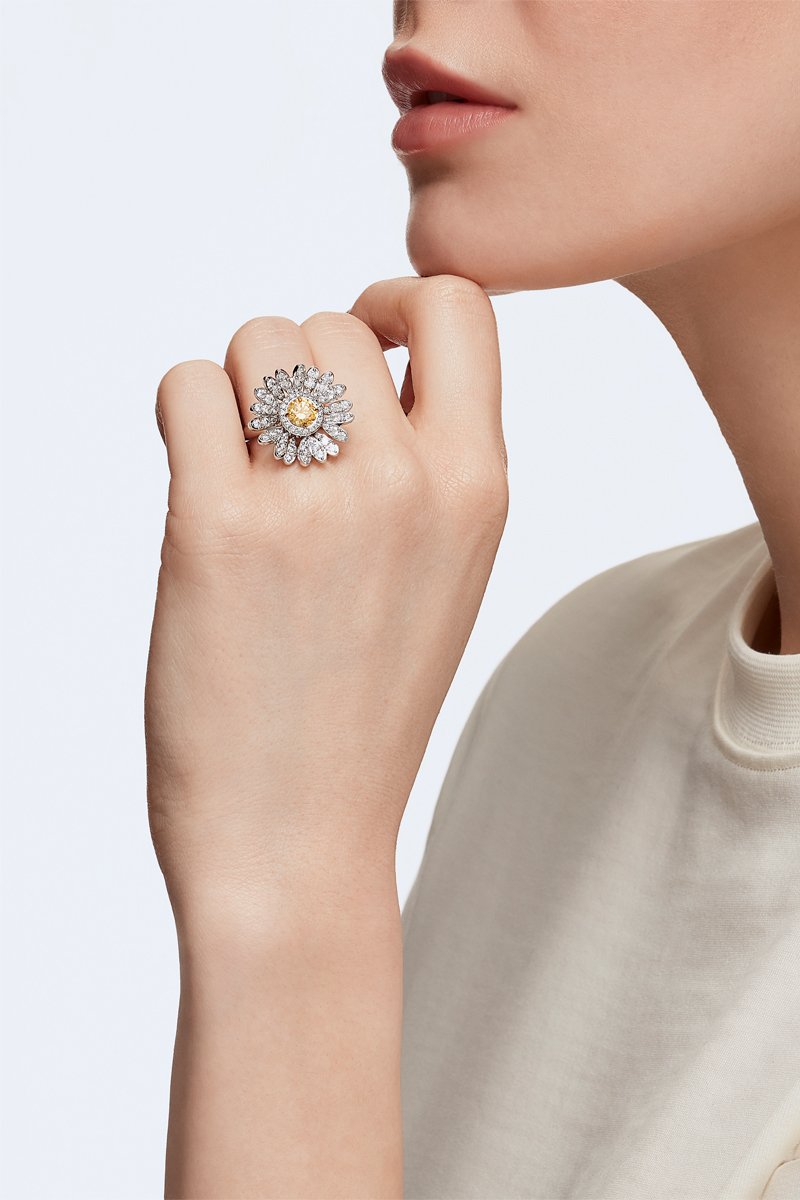 Anillo con cristales Swarovski Eternal Flower - Blanco y amarillo