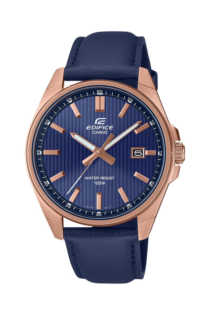 Reloj de cuarzo de piel - Azul y bronce