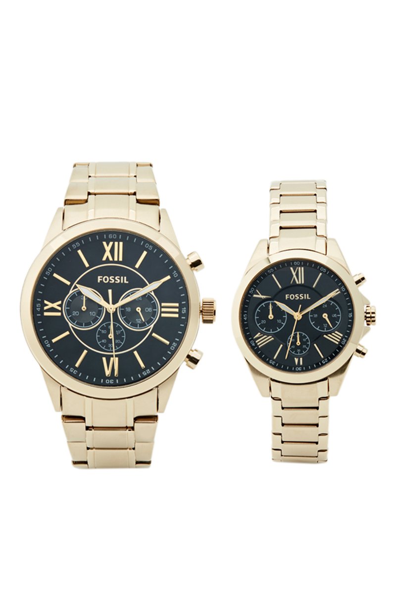 Estuche 2 relojes de cuarzo de acero Flynn Set Fossil - Cronógrafo - Dorado y negro