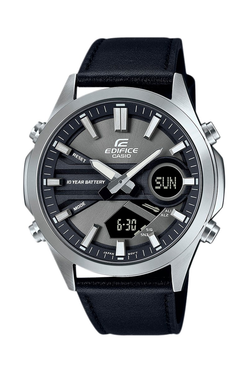 Reloj analógico-digital de cuarzo de piel - Negro y plateado