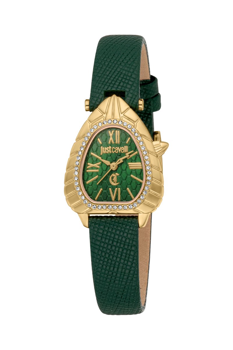 Reloj de cuarzo de piel y cristales checos Perla - Verde oscuro y dorado