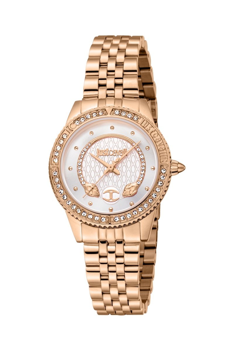 Reloj de cuarzo de acero y cristales checos - Rosa dorado y blanco