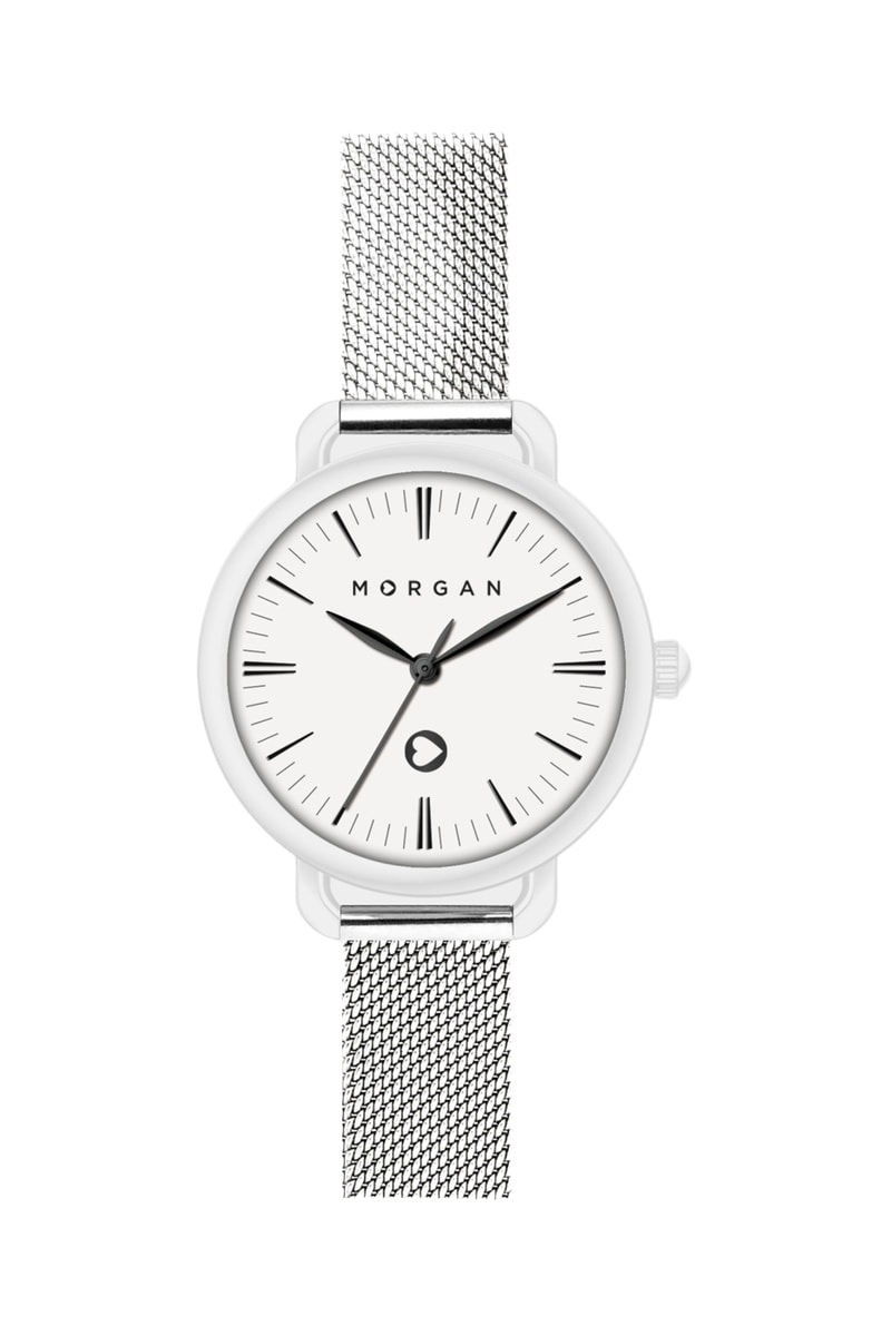 Reloj de cuarzo de acero inoxidable - Plateado y blanco