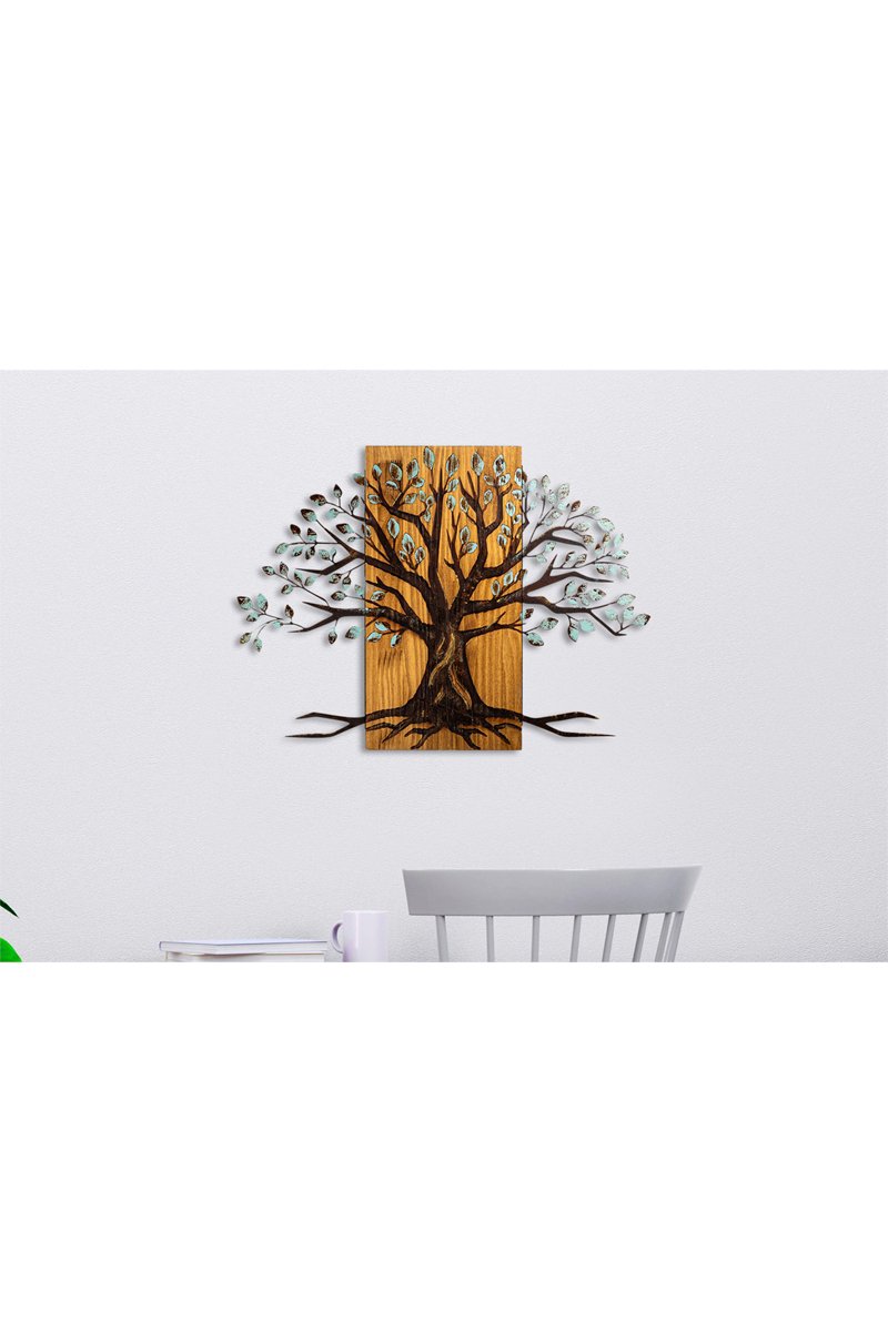 Adorno mural de madera y metal.