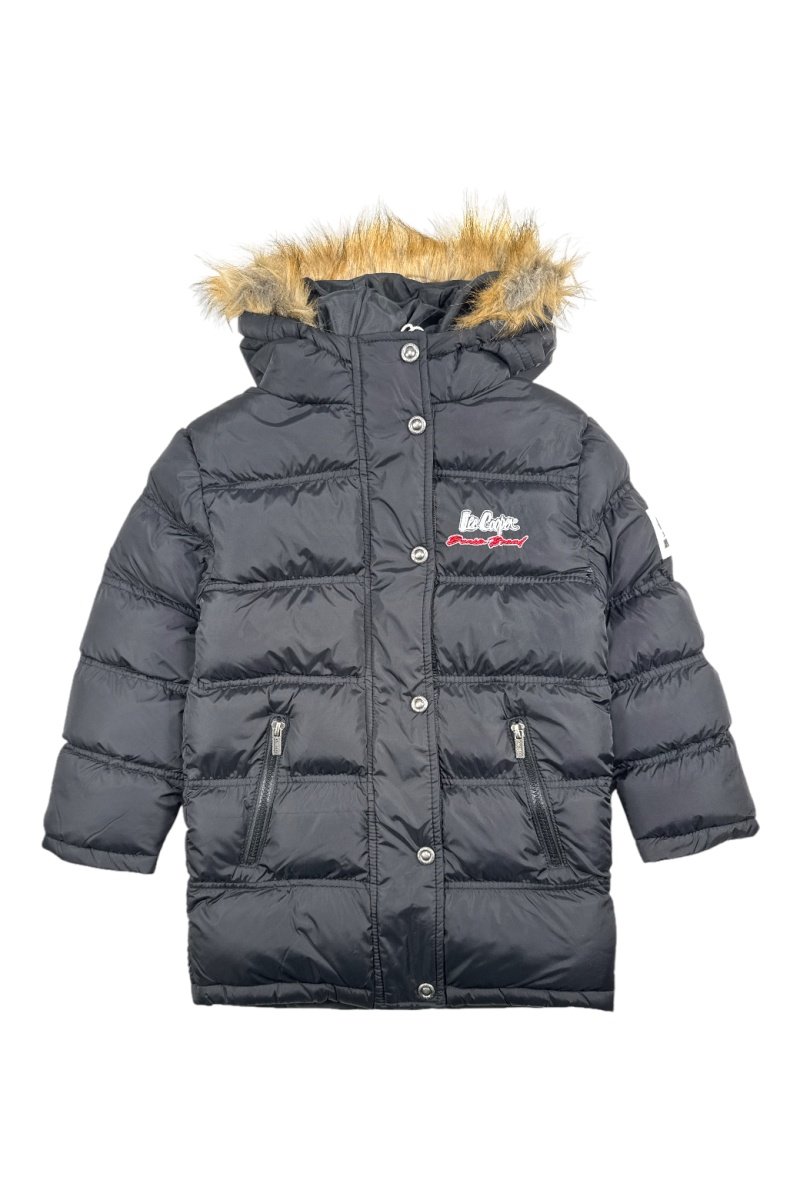 Parka con capucha de pelo sintético de manga larga.