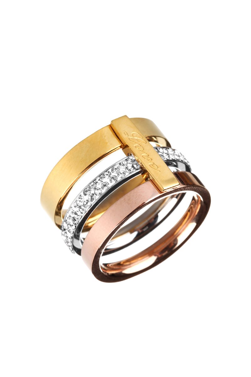 Anillo bañado en oro fino amarillo, blanco y rosa con cristales.