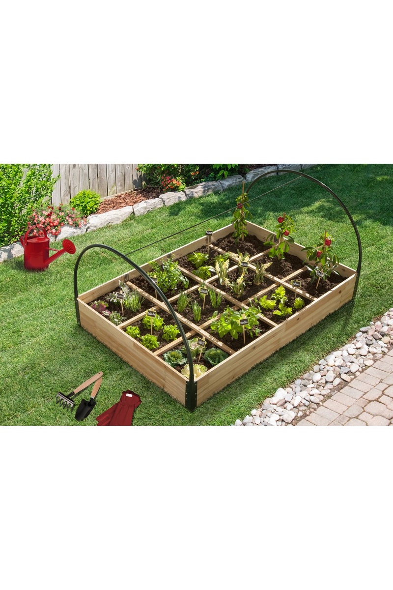 Estructura de madera con refuerzos de hierro en cada esquina.