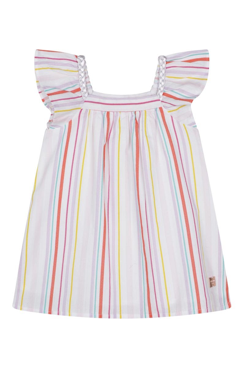 Vestido de manga corta avolantada.