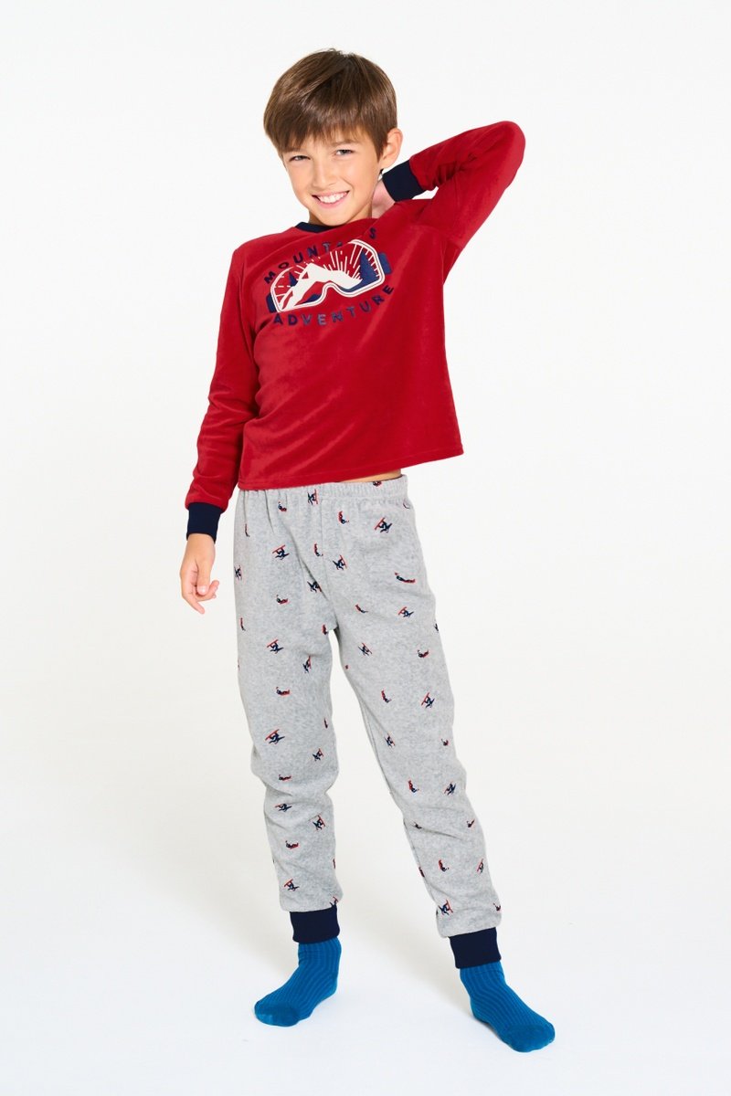 Pijama - Gris claro jaspeado y rojo - Okaïdi