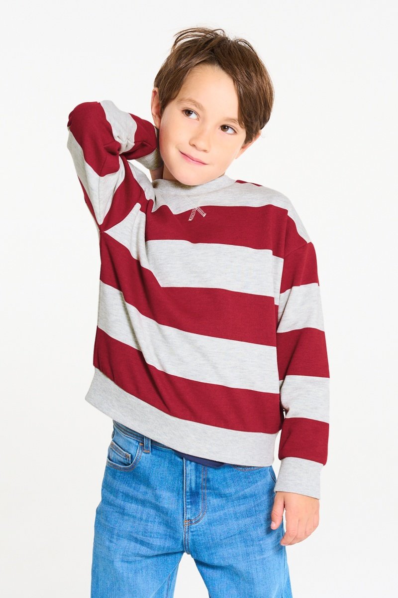 Sudadera - Gris claro jaspeado y rojo - Okaïdi