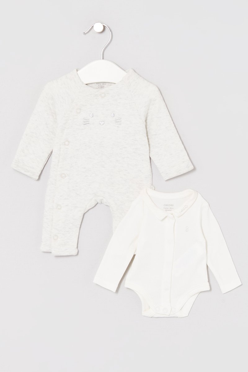 Pelele y body - Gris claro jaspeado y blanco