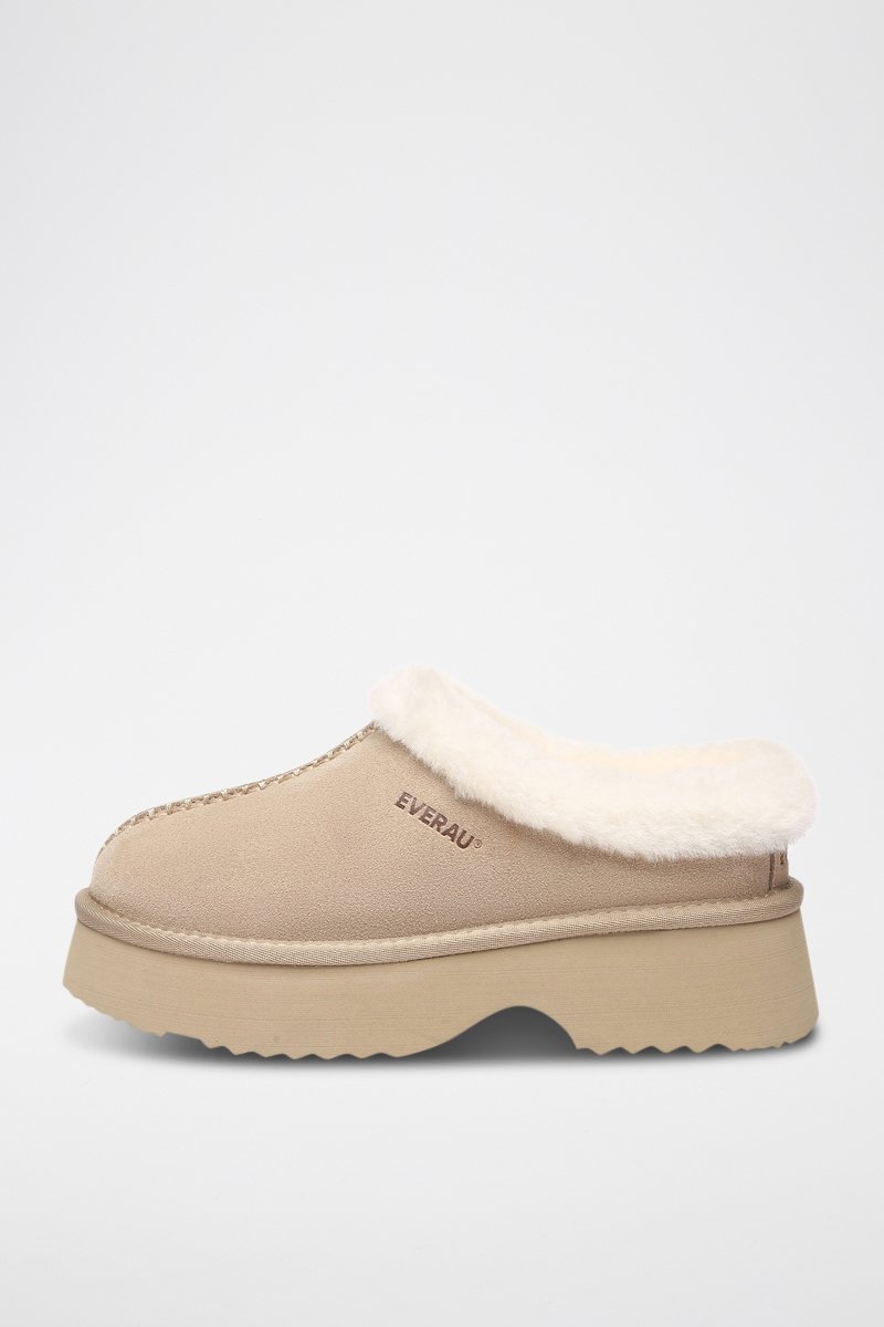 Zuecos forrados de piel ovina con plataforma Savanna - Beige