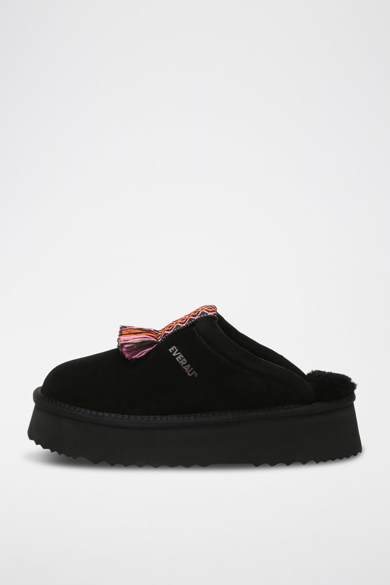 Zuecos forrados de nobuk con plataforma Caspian - Negro