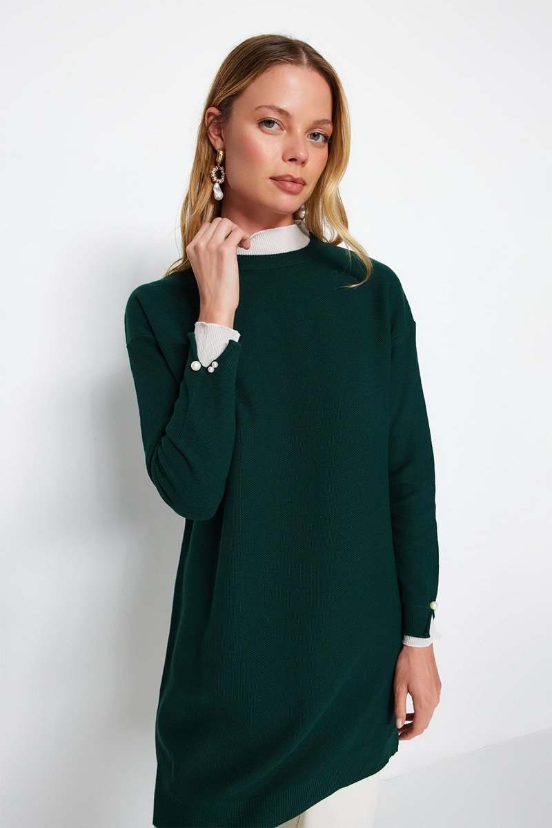 Cuentas decorativas en las mangas.