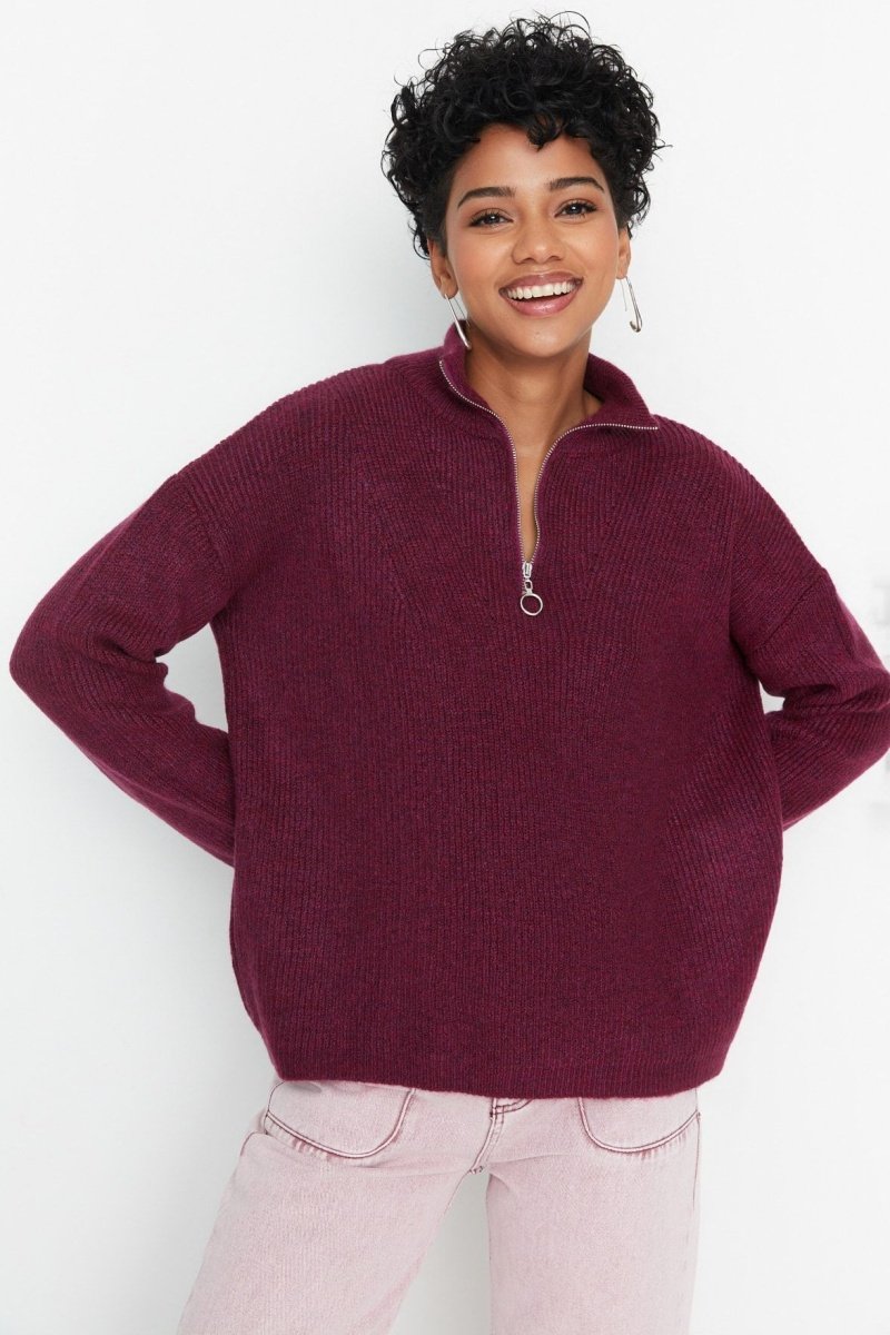 Cuello alto con cierre de cremallera.