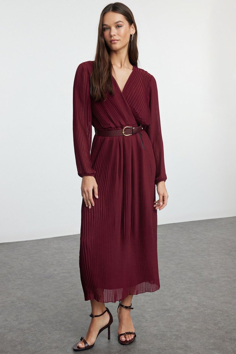 Vestido plisado - Burdeos