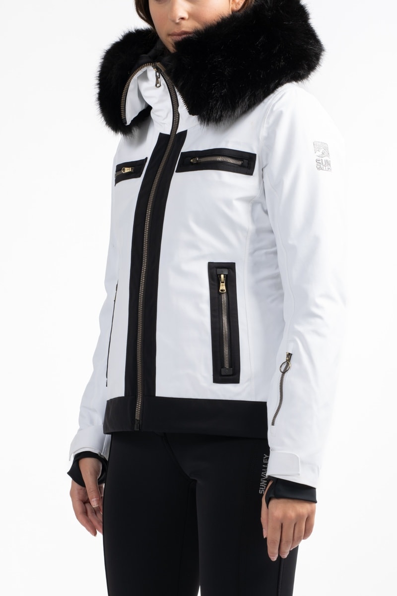 Chaqueta de esquí con capucha y pelo sintético.