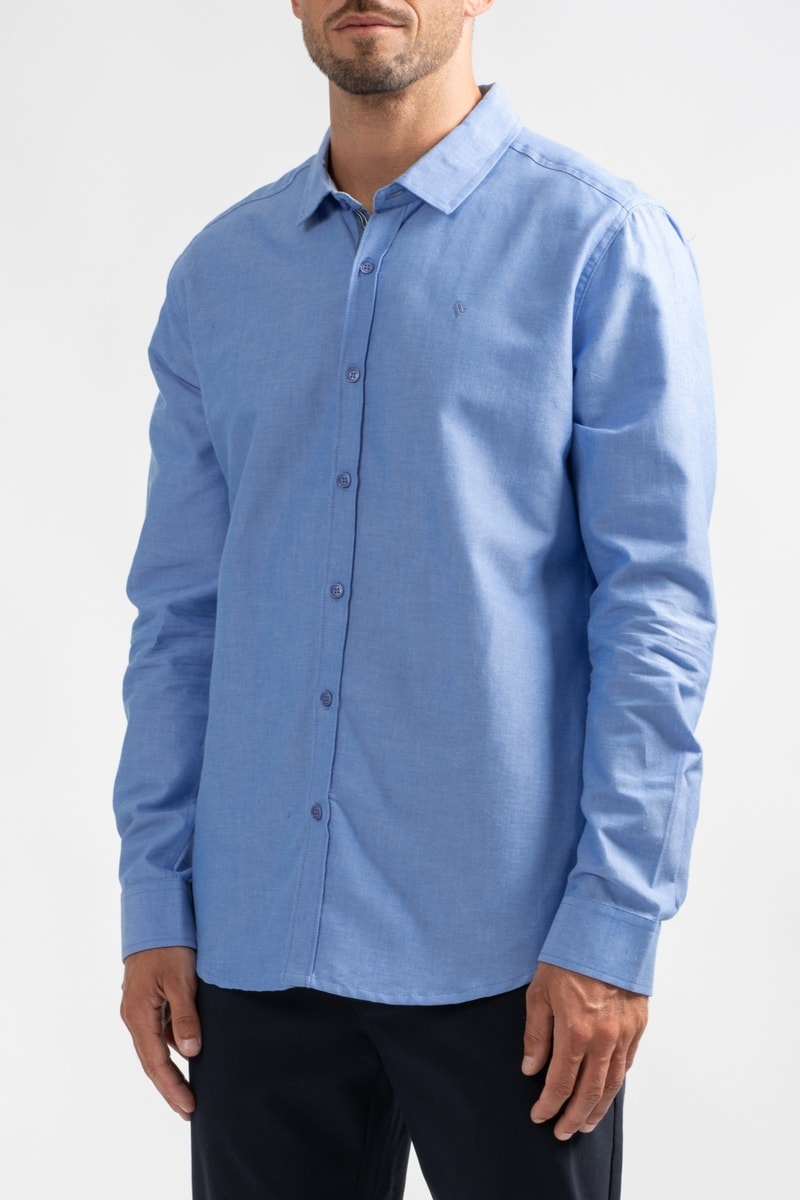 Camisa de manga larga de botones con codera, 1 de ellas con detalles y logo.