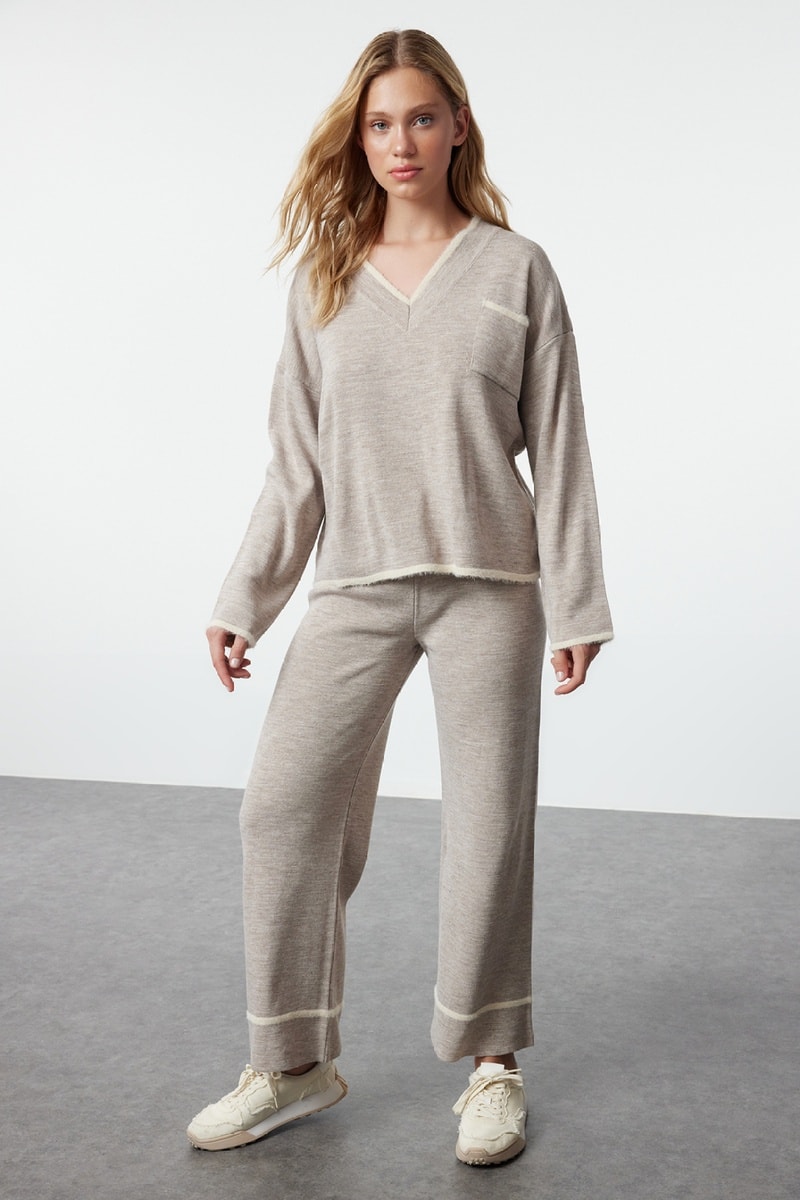 Jersey y pantalón wide leg - Topo