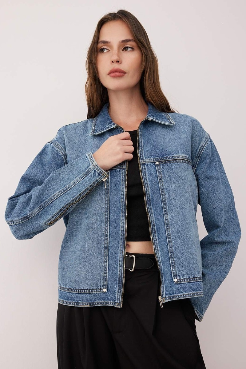Chaqueta vaquera de manga larga con cremallera.