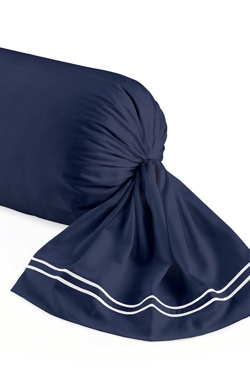 Funda de almohada de satén de algodón - 80 hilos/cm² - Blanco y azul oscuro - 43 x 210 cm