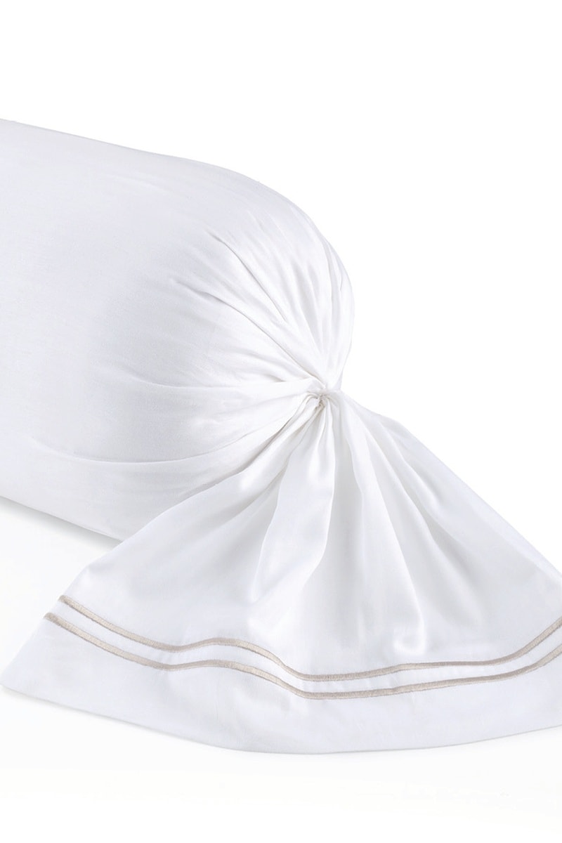 Funda de almohada de satén de algodón - 80 hilos/cm² - Topo y blanco - 43 x 210 cm