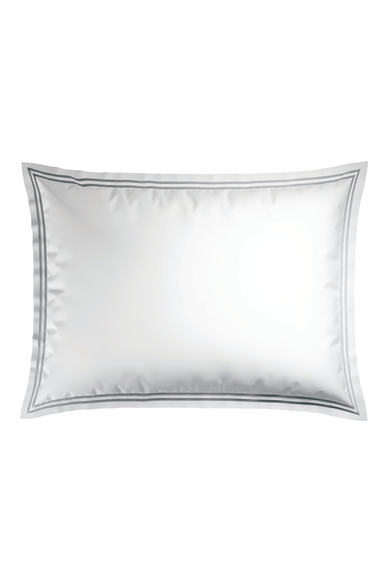 2 fundas de almohada de satén de algodón - 80 hilos/cm² - Gris y blanco - 50 x 70 cm