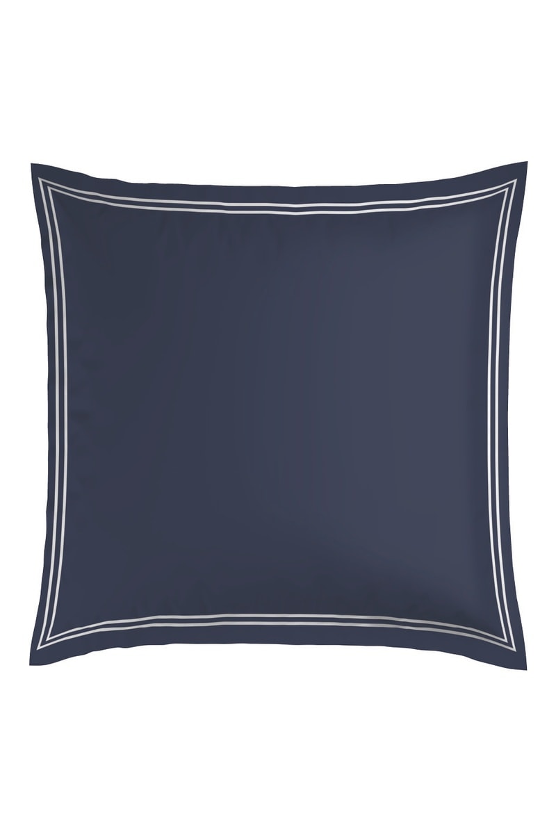 2 fundas de almohada de satén de algodón - 80 hilos/cm² - Blanco y azul oscuro - 63 x 63 cm