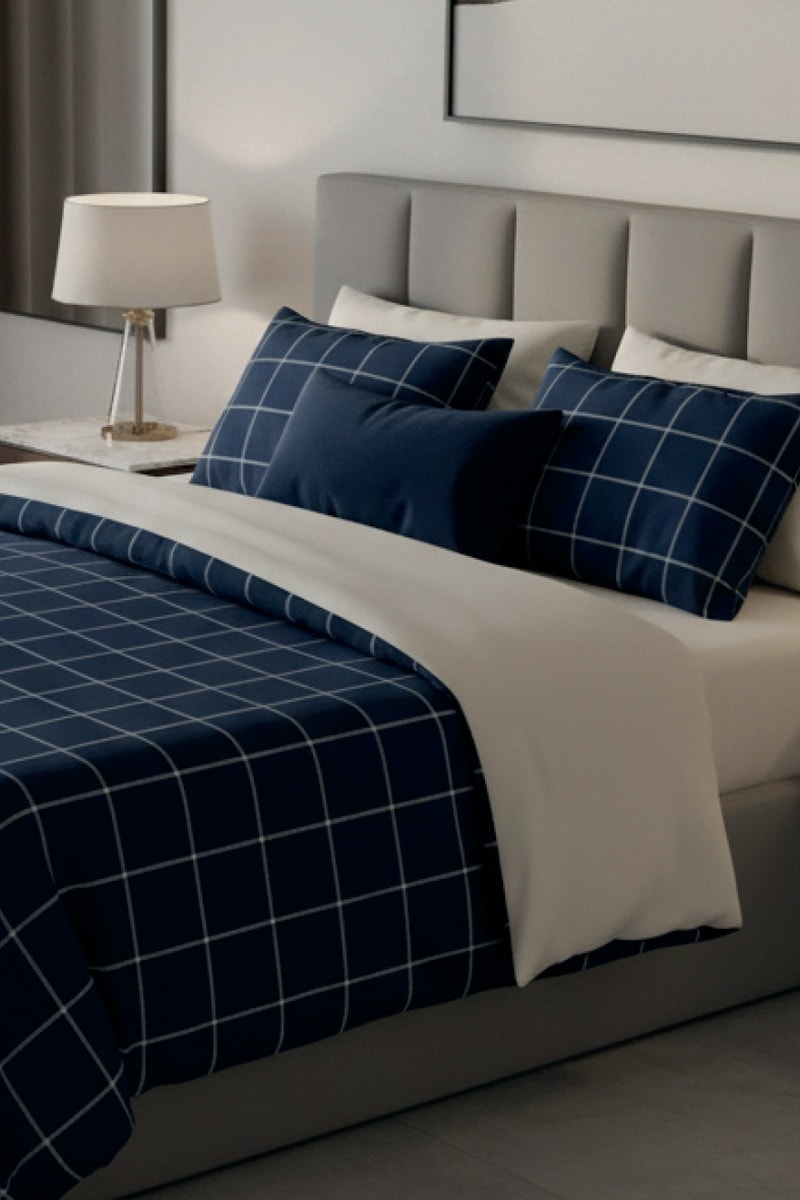 Juego de nórdico de satén de algodón - 80 hilos/cm² - Azul oscuro