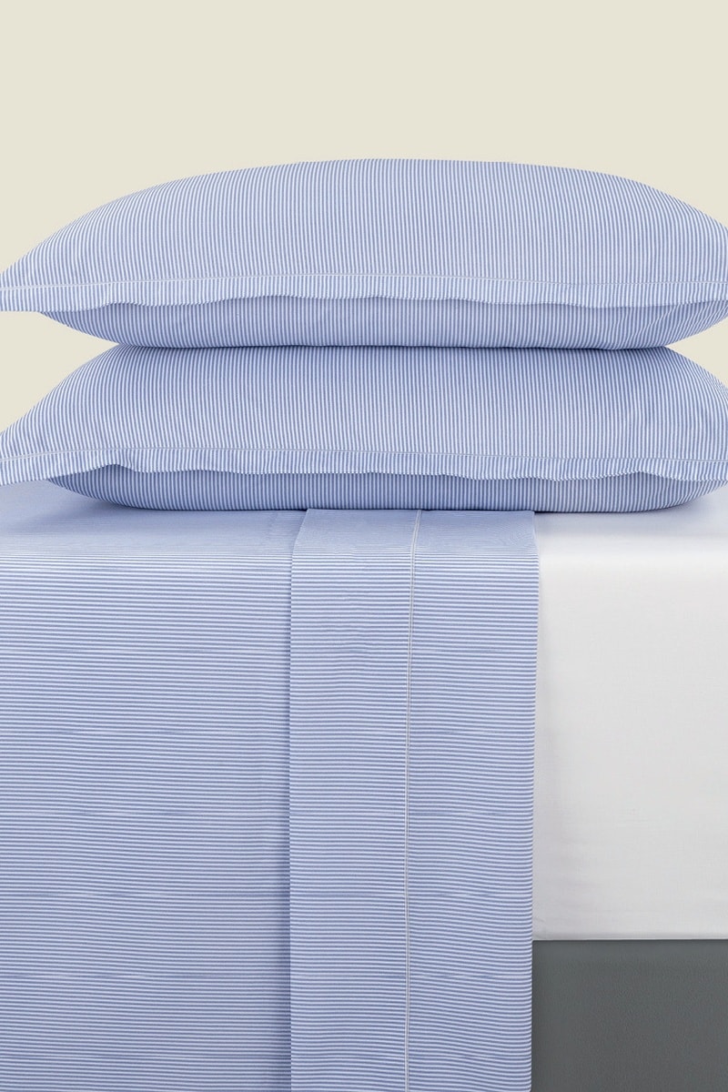 Juego de sábanas de percal de algodón - 80 hilos/cm² - Celeste