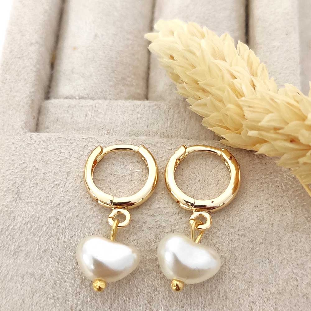 Pendientes - Latón chapado en oro y perla