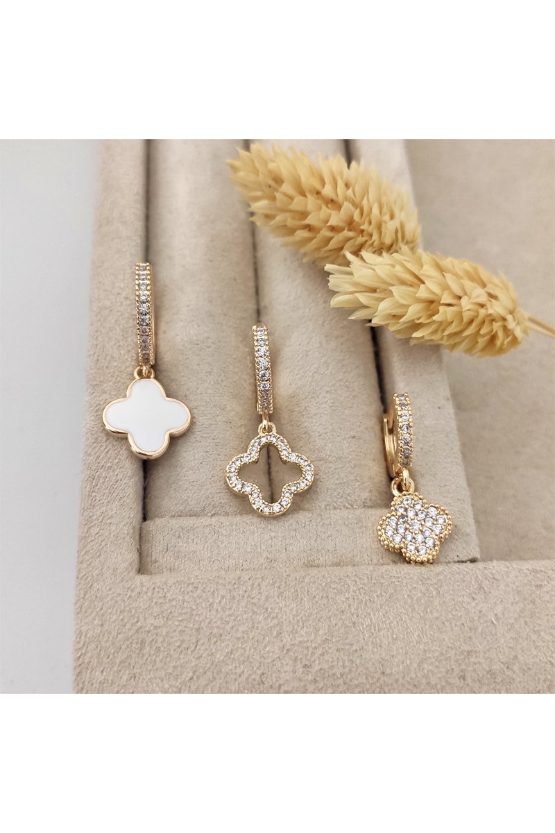 Material: acero inoxidable bañado en oro fino, circones y nácar