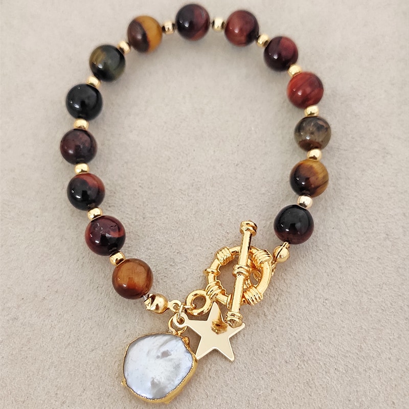 Pulsera - Latón chapado en oro y piedras
