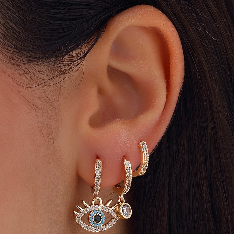 Trío de pendientes - Latón chapado en oro y circón