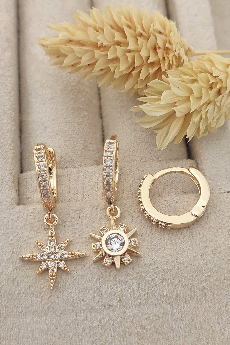 3 pendientes bañados en oro fino con circones.