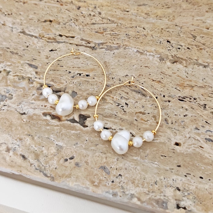 Pendientes - Latón chapado en oro y perlas